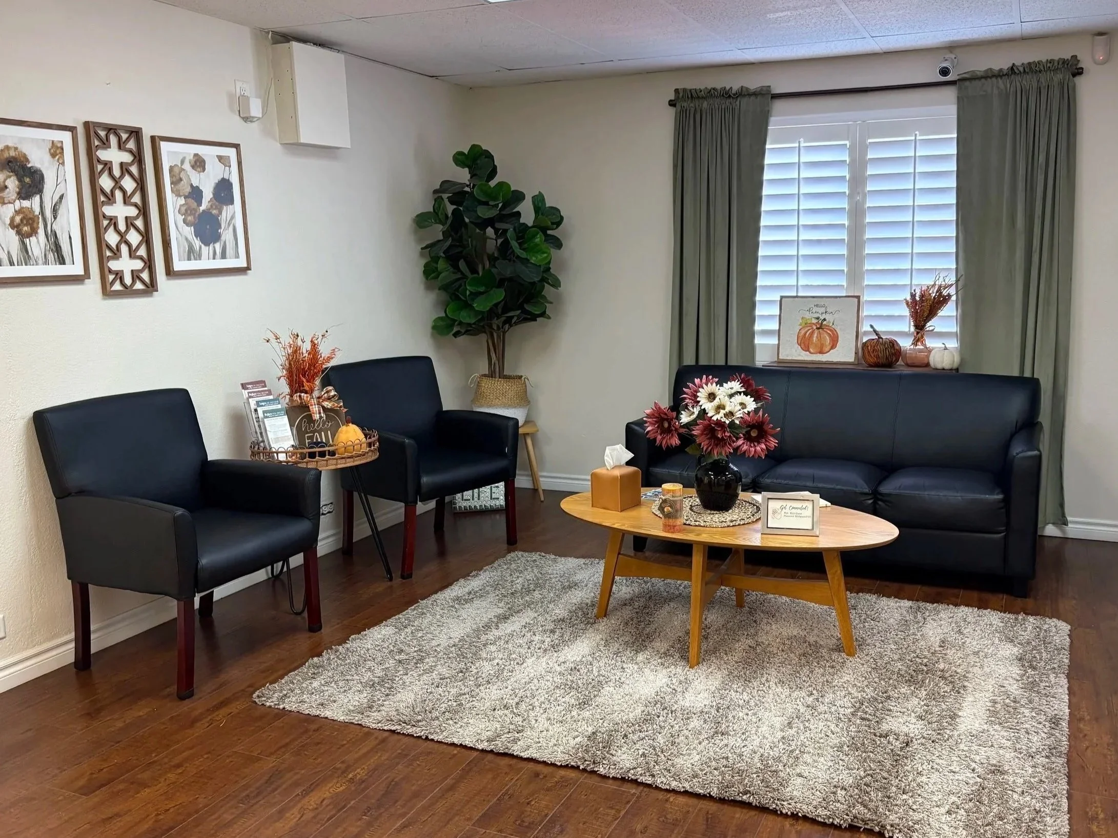 After being greeting by warm smiles, a cozy couch and a fluffy rug await. The atmosphere is peaceful and cozy.